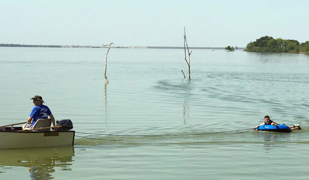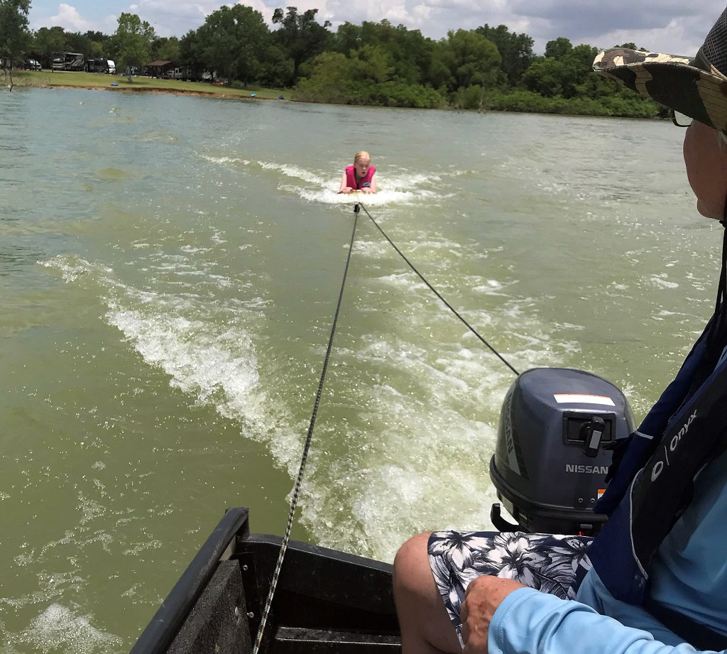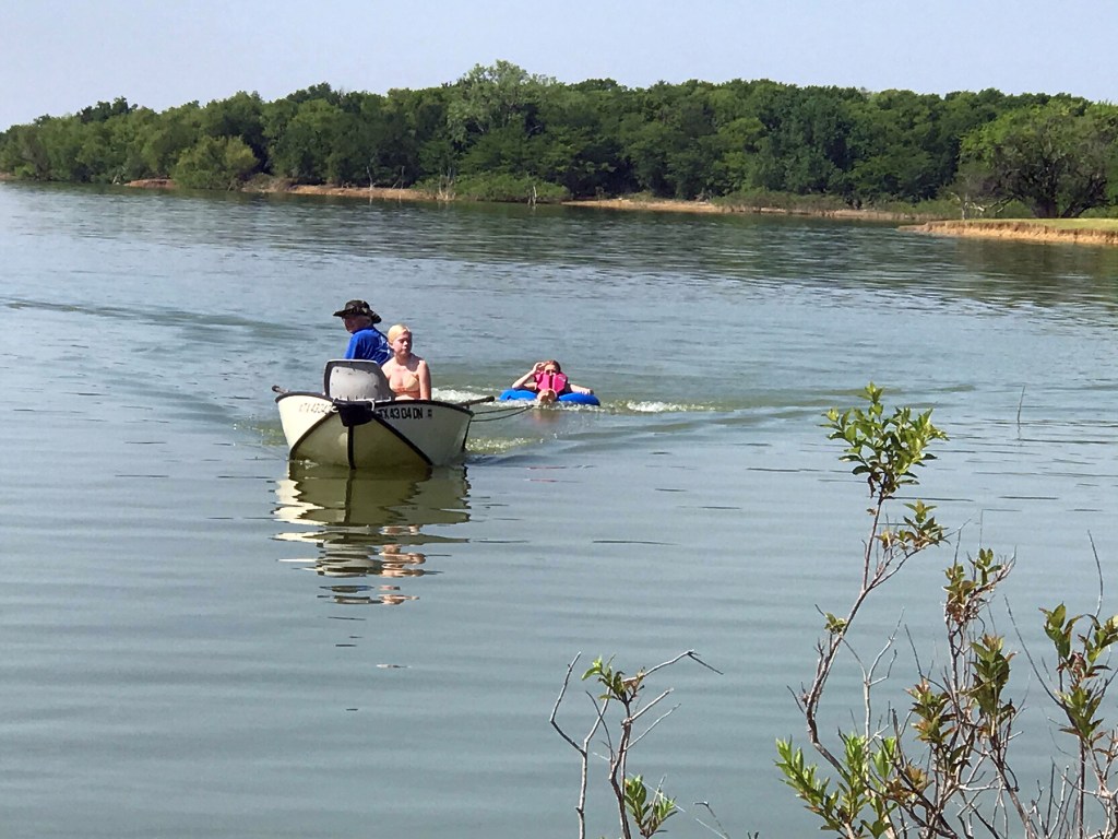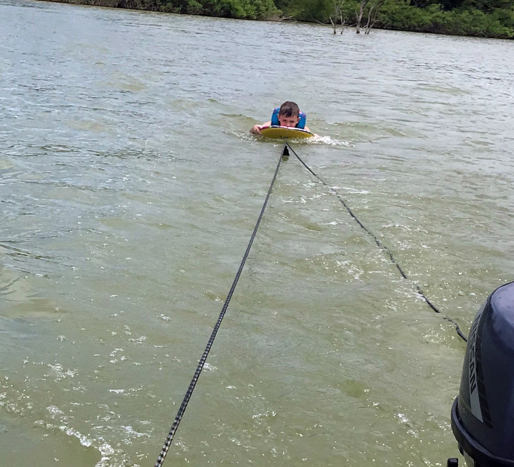 Everyone had a great time. Parker and Blake spent the first night, and the girls came up for the day on Monday. They swam and Papa pulled them behind his Porta-Bote with a 5-HP motor, they kept requesting he go faster, but this little motor was going as fast it could with no wakes!