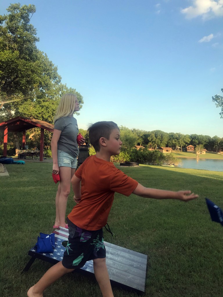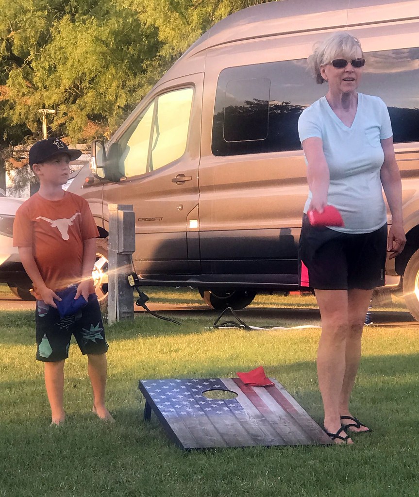 Blake had a game Monday night, so we all went to his baseball game (his team won 9 to 4), the girls went home and Blake spent the second night at the campsite. Parker had baseball games on Tuesday so he could not come back out. Tuesday it was Blake, Addison and Lily for the entire day with more swimming, volleyball, corn-hole and Taco Tuesday’s at Rosa’s Cafe. Blake was picked up Tuesday evening, and the next three nights, Addison and Lily stayed at the campsite with us.