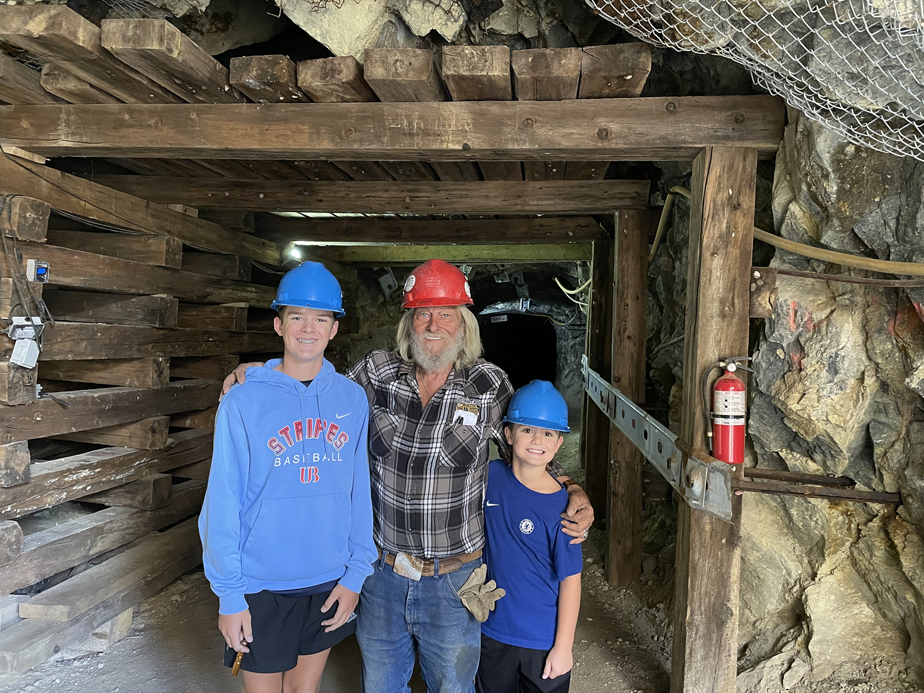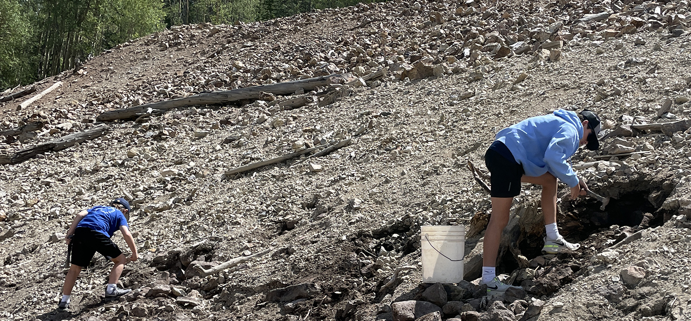 On the last full day of the Boys’ visit, we took them to tour the Last Chance Mine Last Chance Mine – An 1891 silver mine with rock and mineral collecting, and a museum. Unlike the Mining Museum that we visited earlier; this is a real mine. The road to the Last Change Mine is easily accessible by a vehicle, although it is recommended to have 4-wheel drive. Bill and Karen visited the Last Chance Mine last year but had not taken the guided tour. We were very fortunate that our guide was Jack Morris, chief miner and owner/developer of the Last Chance Mine. Jack tells a very interesting story of how he acquired the mine and how he developed it for tourists to learn about the mining industry that was prevalent in Creede. Following the tour of the mine, the boys were provided large buckets, and a hammer, and directed to an area on the property where visitors can dig for rocks. You collect your rocks, take them to one of the staff who goes through your collection, explaining what is in your rock(s), and then weighs the ones you want to keep. You pay $2 per pound for your keepers. If there are some that aren’t really very valuable, they often just give you those for free. Karl and Bill enjoyed assisting the boys in their rock finds, and the boys had a very good time.