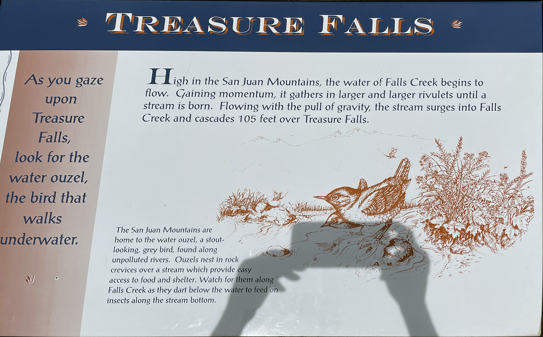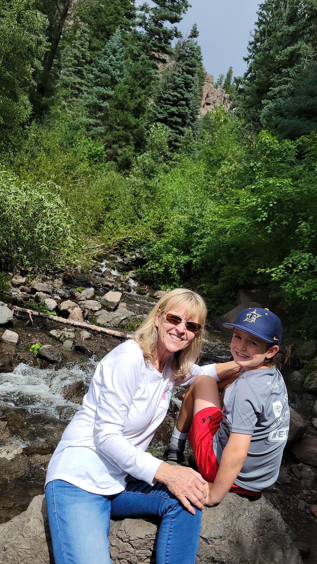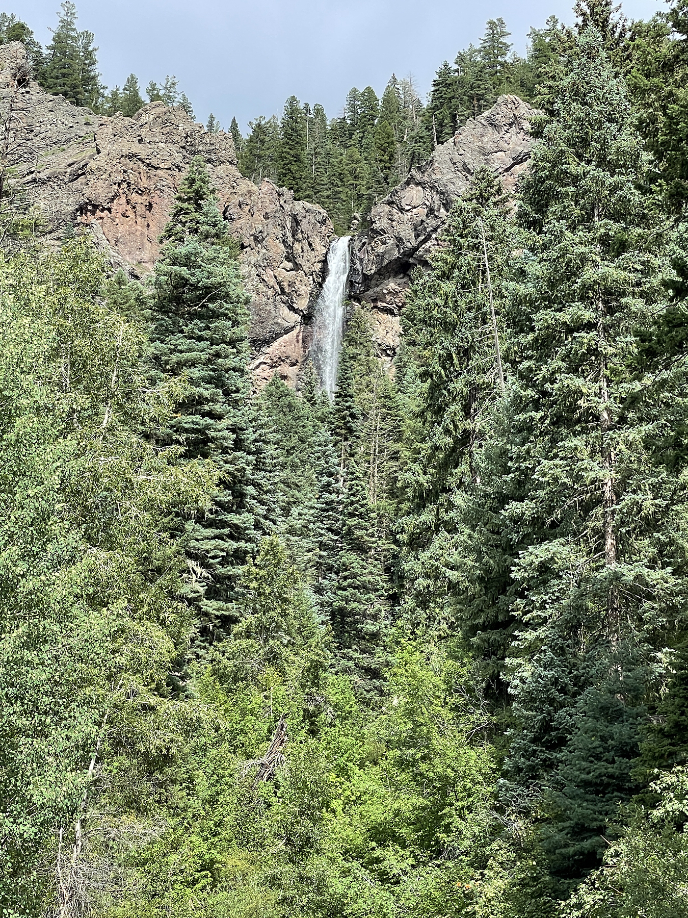 Creede does not offer much in shopping. There are a few souvenir shops, but the boys could not find anything they wanted. So we decided to drive to Pagosa Springs which is about the same distance as Alamosa where we usually go to make our monthly Walmart runs. The Platoro SxS trail is on the way to Pagosa Springs and we stopped to make a short drive up a portion of the trail that is drivable in a truck. Bill and Karen had visited Pagosa Springs several years ago with Cathy and Dean (sister and brother-in-law) and we caught several trout behind the Chamber of Commerce. This time, we walked around all the downtown shops, the boys looked for souvenirs, and we had a nice lunch. On our return trip back to Creede, we stopped at a scenic roadside to see Treasure Falls. There was a hiking trail up to the foot of the falls that Parker wanted to take, but it was late afternoon. The hike was ¼ mile with an elevation gain of over 300 feet with an estimated time to hike of about 35-45 minutes. Unfortunately, we were all tired and no one wanted to take the hike with him.